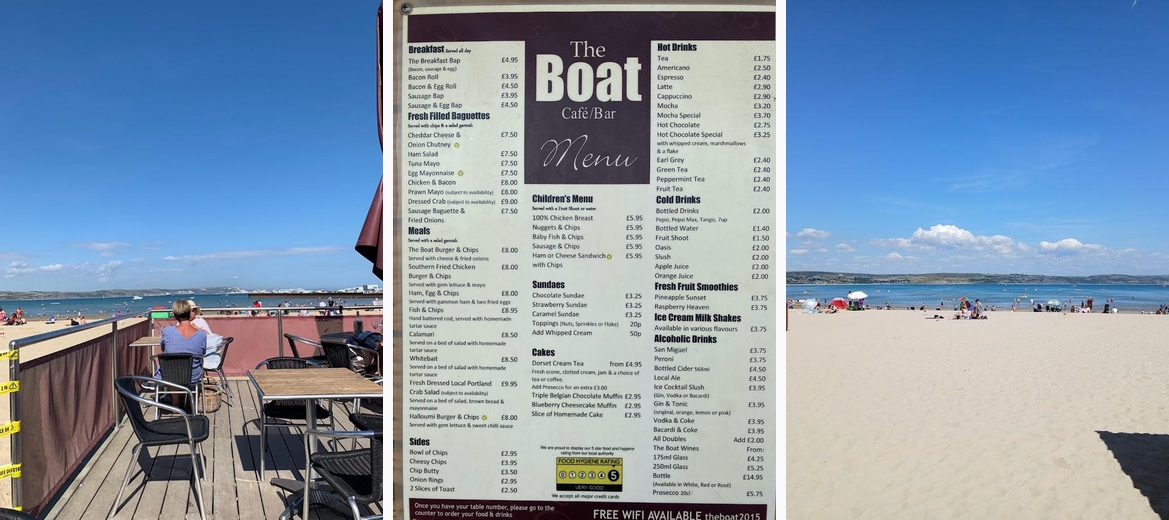 Discover The Boat Cafe in Weymouth, a picturesque spot on the beach serving delicious takeaway lunch options like crispy chips and hearty bacon. Enjoy stunning bay views while sipping on a refreshing beer or a warm cup. Join us for a delightful seaside dining experience!
